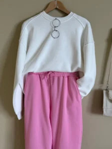 Üç İplik Paça Lastikli Eşofman Altı- Pembe